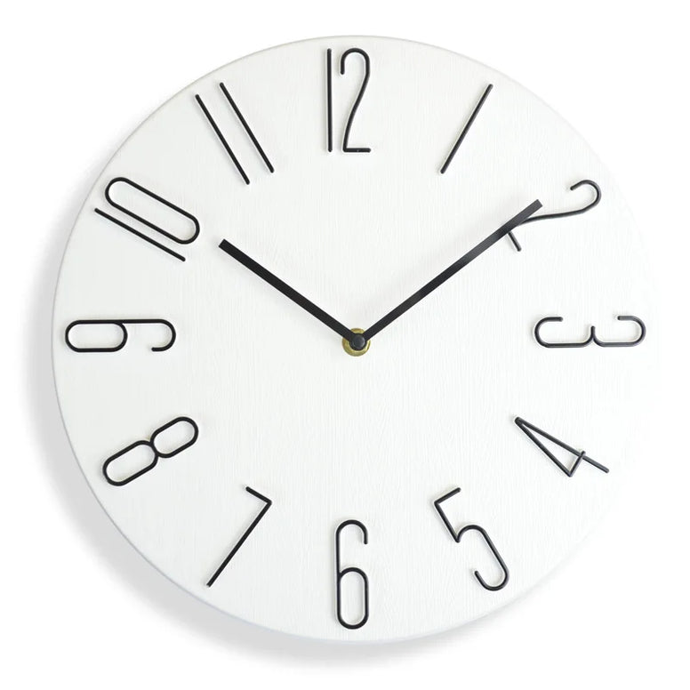 Diese runde Wanduhr verfügt über ein schlichtes Design und ein geräuscharmes Quarzwerk. Mit einem Durchmesser von ca. 30 cm eignet sie sich für Wohnräume, Arbeitsbereiche oder andere Innenräume. Die Anzeige erfolgt über Stunden- und Minutenzeiger ohne Sekundenanzeige.